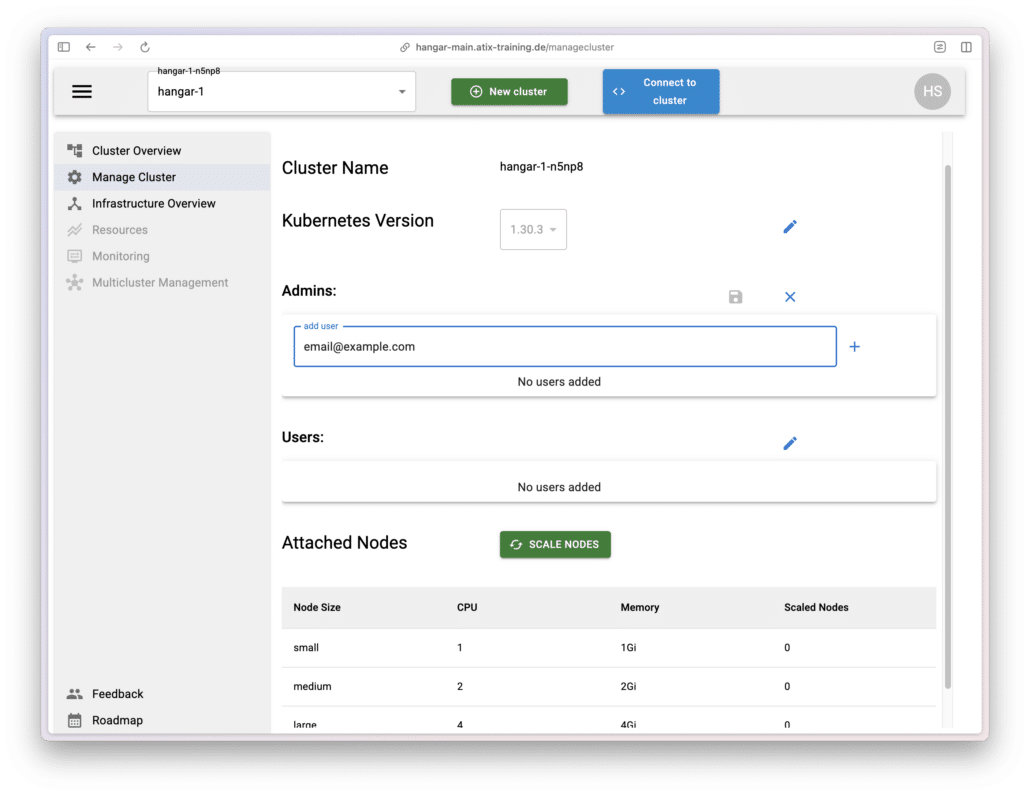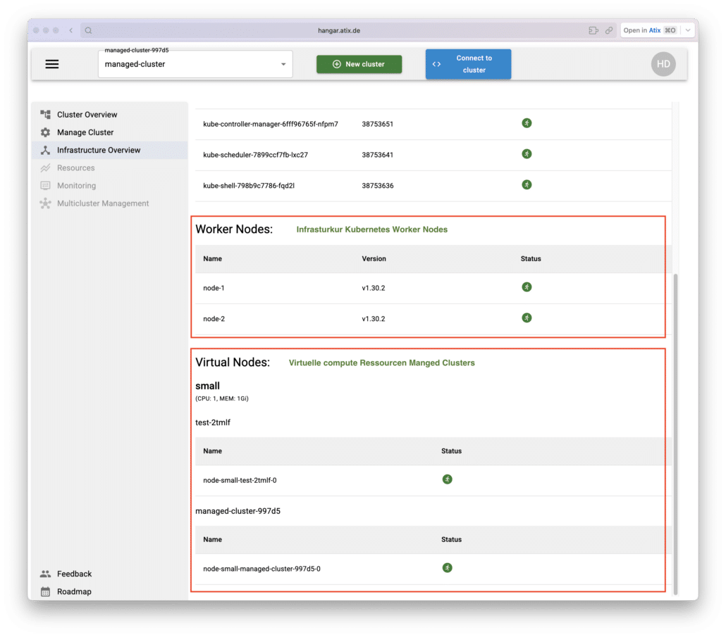 Hangar will join the selected virtual nodes to the cluster, provided that the chosen infrastructure cluster has sufficient compute resources available.