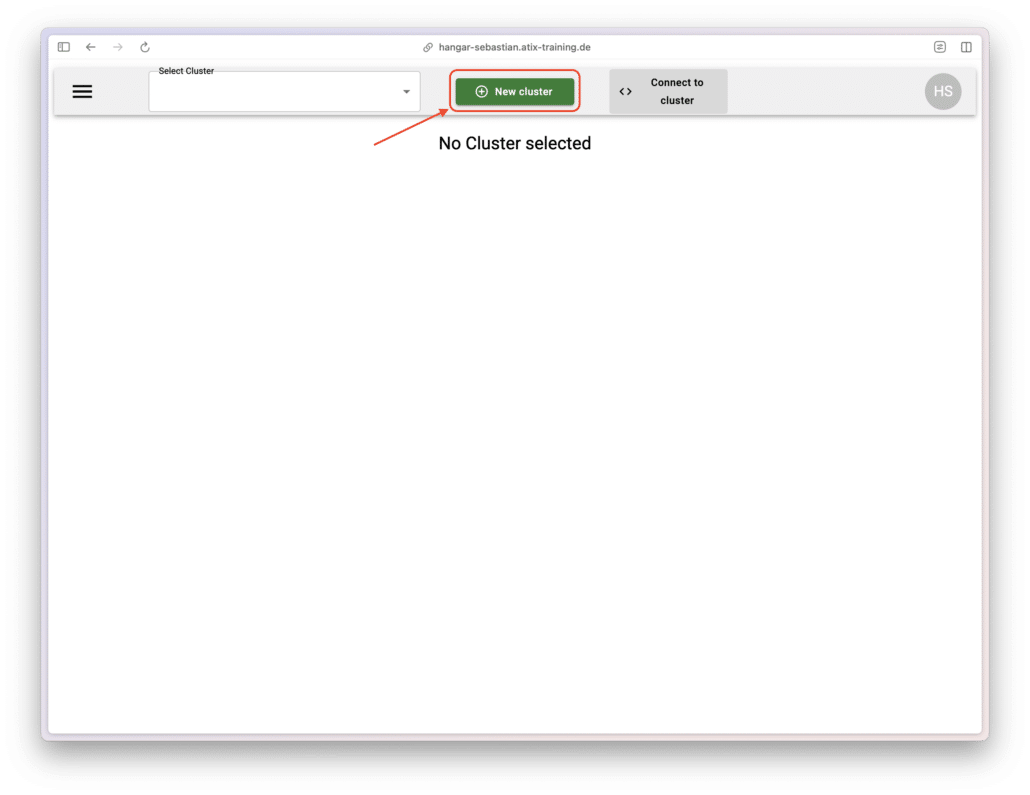 auf den Cluster zeigt in dem Hangar installiert wurde.